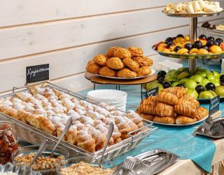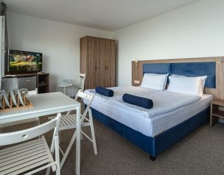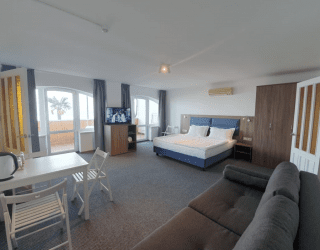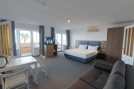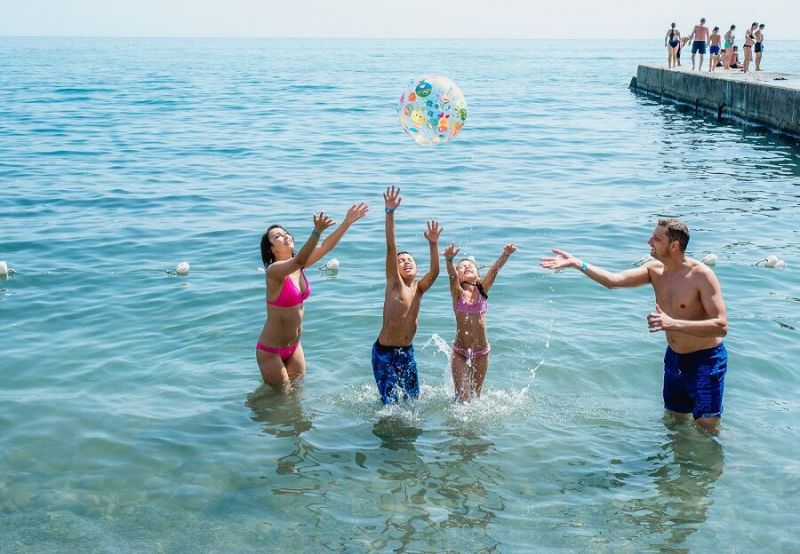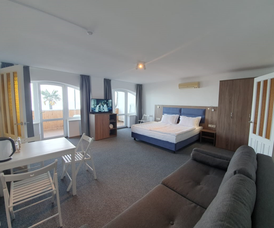 Среди прочих удобств – конференц-зал, большая охраняемая парковка и безлимитный интернет. Для детей организована игровая площадка, а в курортный сезон малышей развлекают профессиональные аниматоры.