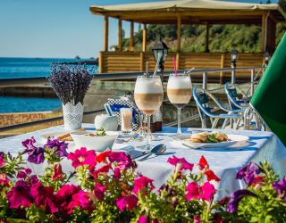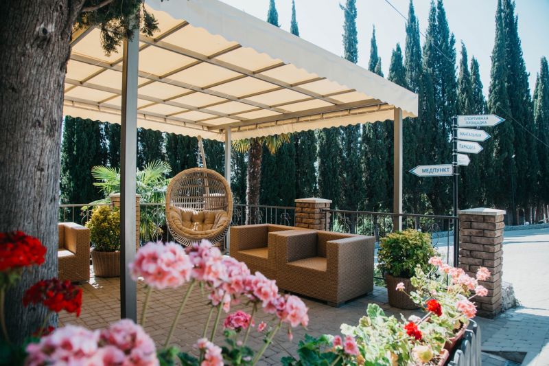 В пансионате работают ресторан и кафе у моря, в меню – сбалансированное питание из свежих крымских продуктов. Также на территории оборудована барбекю-зона, где есть все необходимое для приготовления вкусных шашлыков – мангал, дрова, вода и освещение.